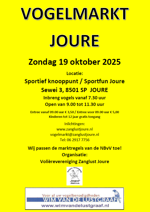 De volgende vogelmarkt is zondag 15 maart 2026.