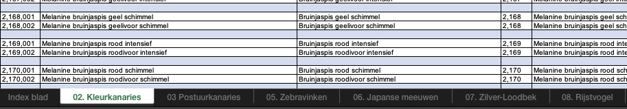 Deze vind u onder aan, hier staan de verschillende groepen vermeld.